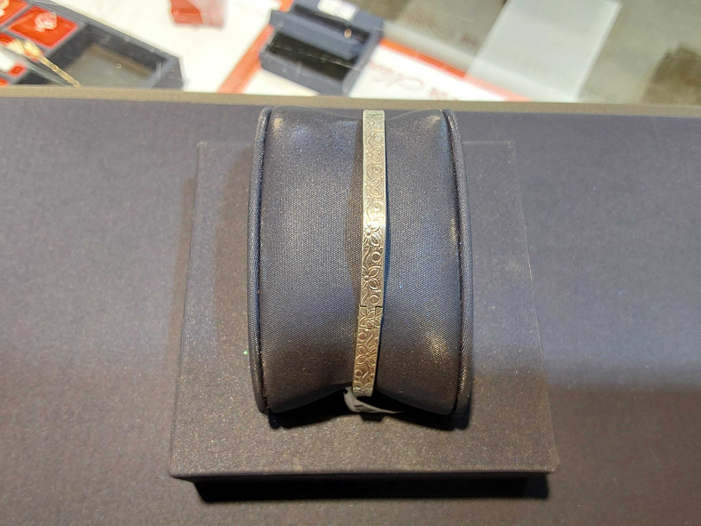 Bangle Bracelet hexagon shaped w/ flower detail silver 18.4g 5 in